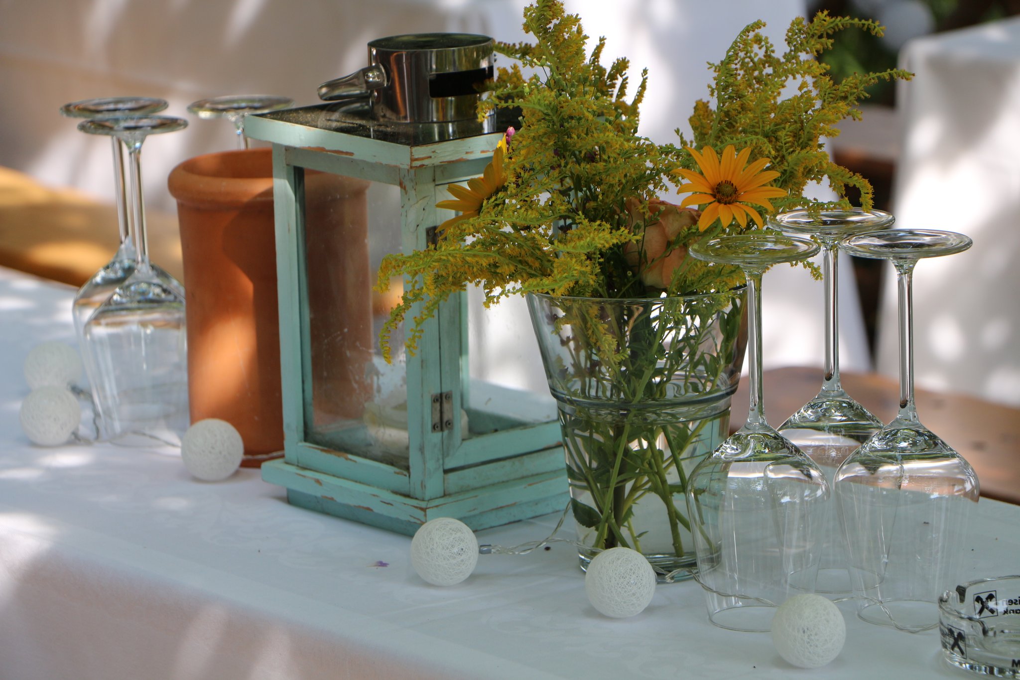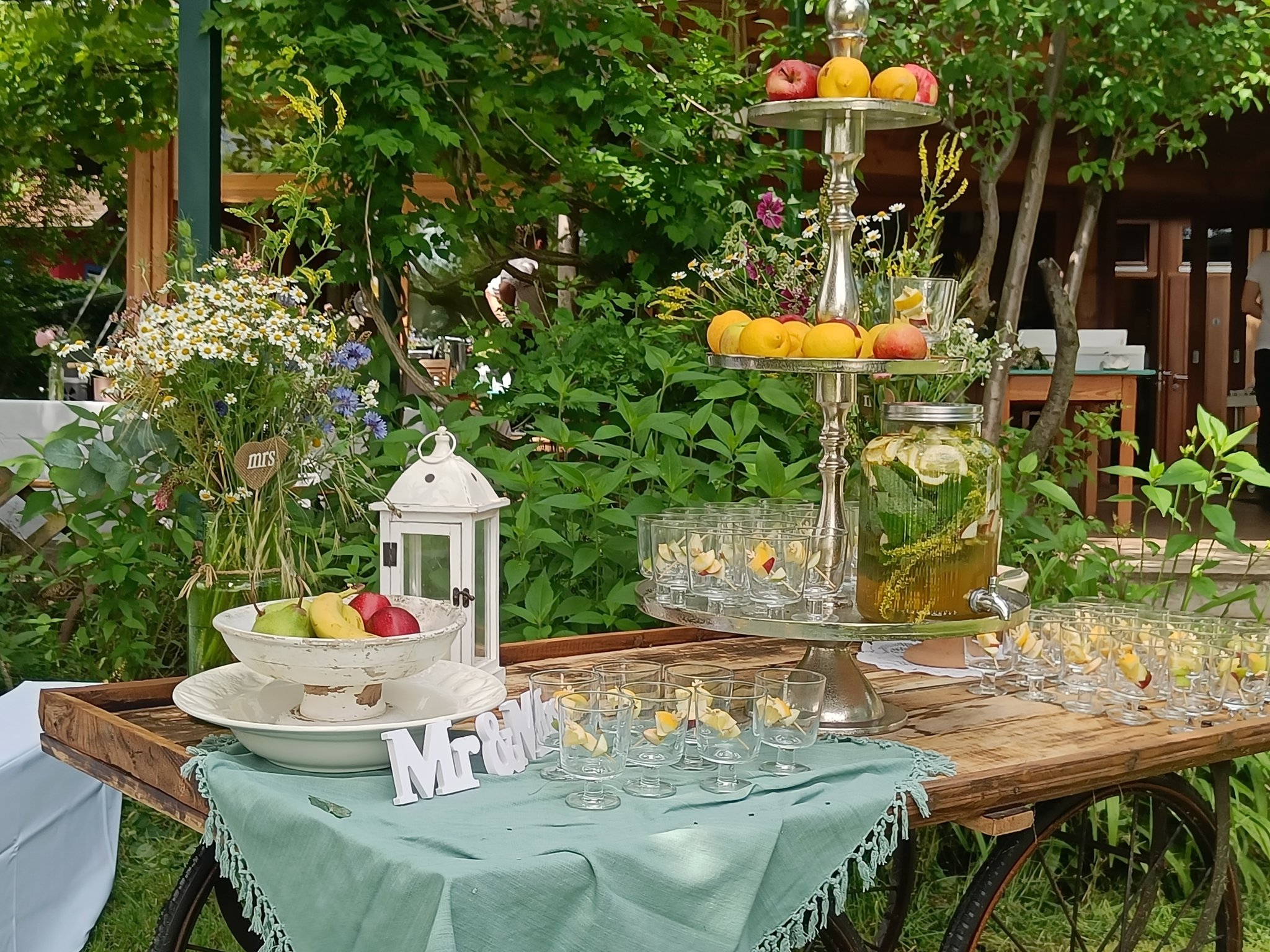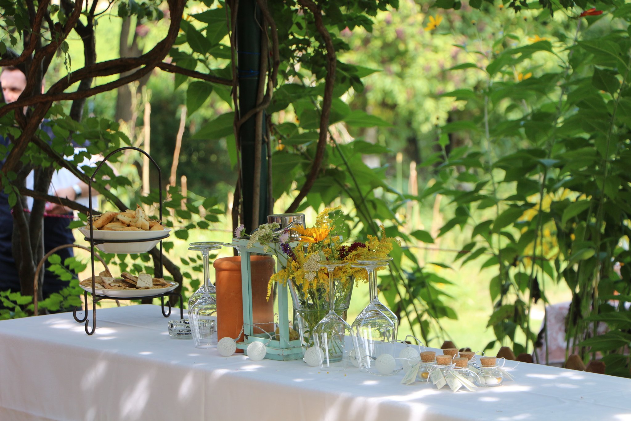* eine festlich gedeckte Tafel unter dem Kirschbaum für max. 30 Personen
