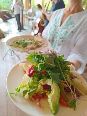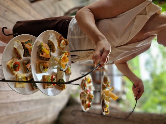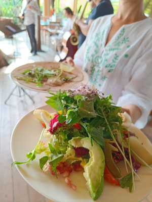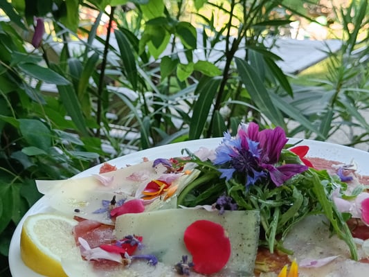 Unsere Küche ist ein bunter Mix aus Wildkräutergerichten, klassischen Berg-Bauernprodukten und kleinen Tapas-Speisen, die wir auf unseren zahlreichen Reisen in südlichere Länder als Idee mitgenommen haben. Wir bieten auch immer eine Auswahl an vegetarisch und veganen Speisen. Martins Bio-Weine bieten dazu eine abwechslungsreiche Begleitung.